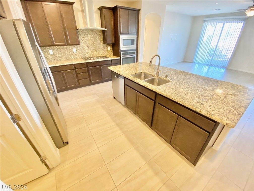 Great location for this single-story Henderson home featuring 4 bedrooms and 3 bathrooms. The open floor plan creates a spacious and airy feel throughout. The kitchen is beautifully designed with stainless steel appliances, including a side-by-side refrigerator, built-in oven, microwave, cooktop, and a large center island with space for a breakfast bar. Tile flooring runs through the main living areas, with carpet in all bedrooms for added comfort. The laundry room includes a washer, dryer, and utility sink. A 3-car garage provides plenty of storage and includes a water softener. Enjoy a charming front courtyard and low-maintenance landscaping in both the front and backyard, maintained by the owner. The expansive backyard features a covered patio with pavers, perfect for relaxing or entertaining. Community amenities include a pool and playground. Conveniently located with easy access to US-93/95, the 215 Beltway, Galleria Mall, and a variety of dining options.