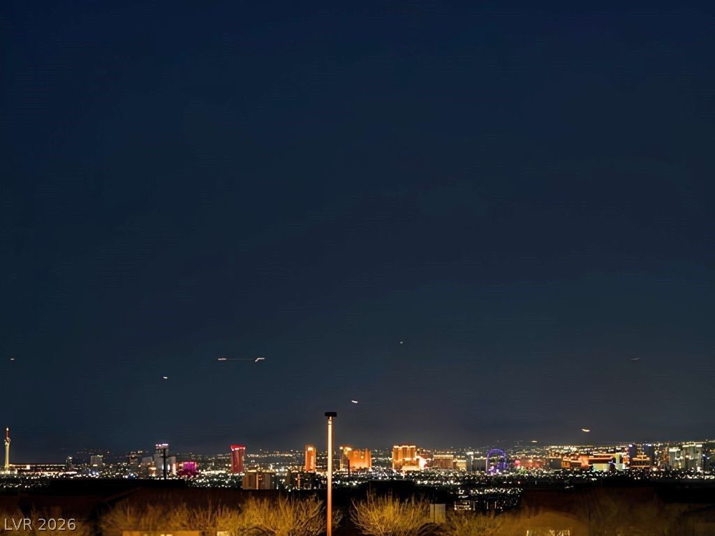Step into unparalleled elegance in this single-story Summerlin masterpiece, featuring 4 bedrooms plus a versatile den. The chef-inspired kitchen is a showstopper with a center island, breakfast bar, luxurious leathered granite countertops, stainless steel appliances, and a spacious pantry, flowing seamlessly into a grand family room complete with a media center and cozy fireplace. Thoughtful architectural details shine in the dining area and den with dramatic stone accent walls. The primary retreat is a true sanctuary, boasting a recently remodeled spa-like bathroom with dual vanities and a luxurious walk-in shower with dual shower heads, along with a generous walk-in closet. Modern sophistication graces every corner of this home. Outdoors, an entertainer's paradise awaits: a covered patio with built-in media and fireplace, sparkling swimming spa, built-in BBQ, room for 12x26 pool and strip views from the wine deck?all set against a beautifully landscaped backdrop.