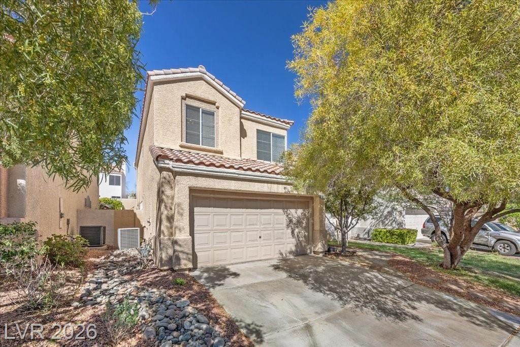 Great 2 story, 3 bedrooms, 2.5 baths in the Heart of Summerlin. 1704 SF with an upgraded kitchen that has granite countertops, stainless steel appliances and backsplash. Large fireplace in family room. Tile floors downstairs and laminate wood floors upstairs. Large open master. 2 car garage with storage. Pool with patio area.